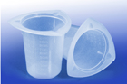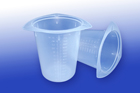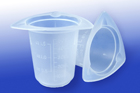 100ml capacity, Transparent Polypropylene, Disposable/Reusable, Autoclavable, Three Pour Spouts, Molded Graduations, 100/case.