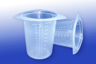 100ml capacity, Transparent Polypropylene, Disposable/Reusable, Autoclavable, Three Pour Spouts, Molded Graduations, 25/Sleeve.