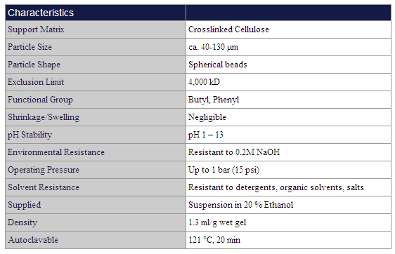 The semi-rigid structure of Cellufine HIC, combined with the spherical bead
