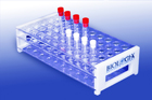 50 wells test tube racks for 10-16mm diameter tubes. Sturdy, durable polystyrene, have no coating to chip, peel or rust. Rows are numbered for easy referencing. 10 Sets/Pack.